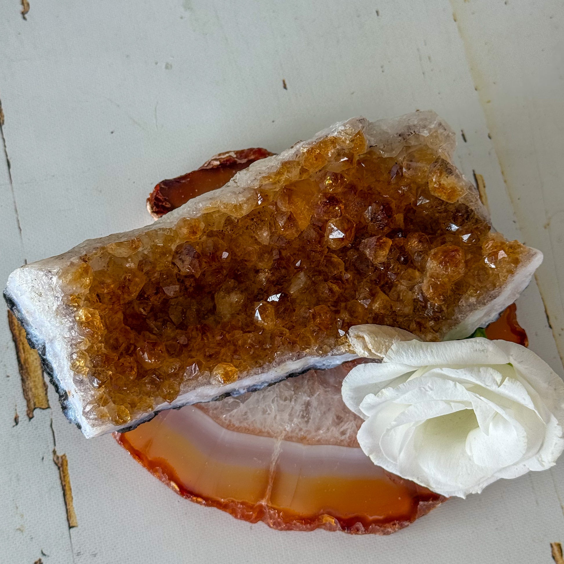 A beautiful Citrine Cluster. A Cluster beams energy all over the surrounding area & are great to have in you space to manifest harmony & peace..